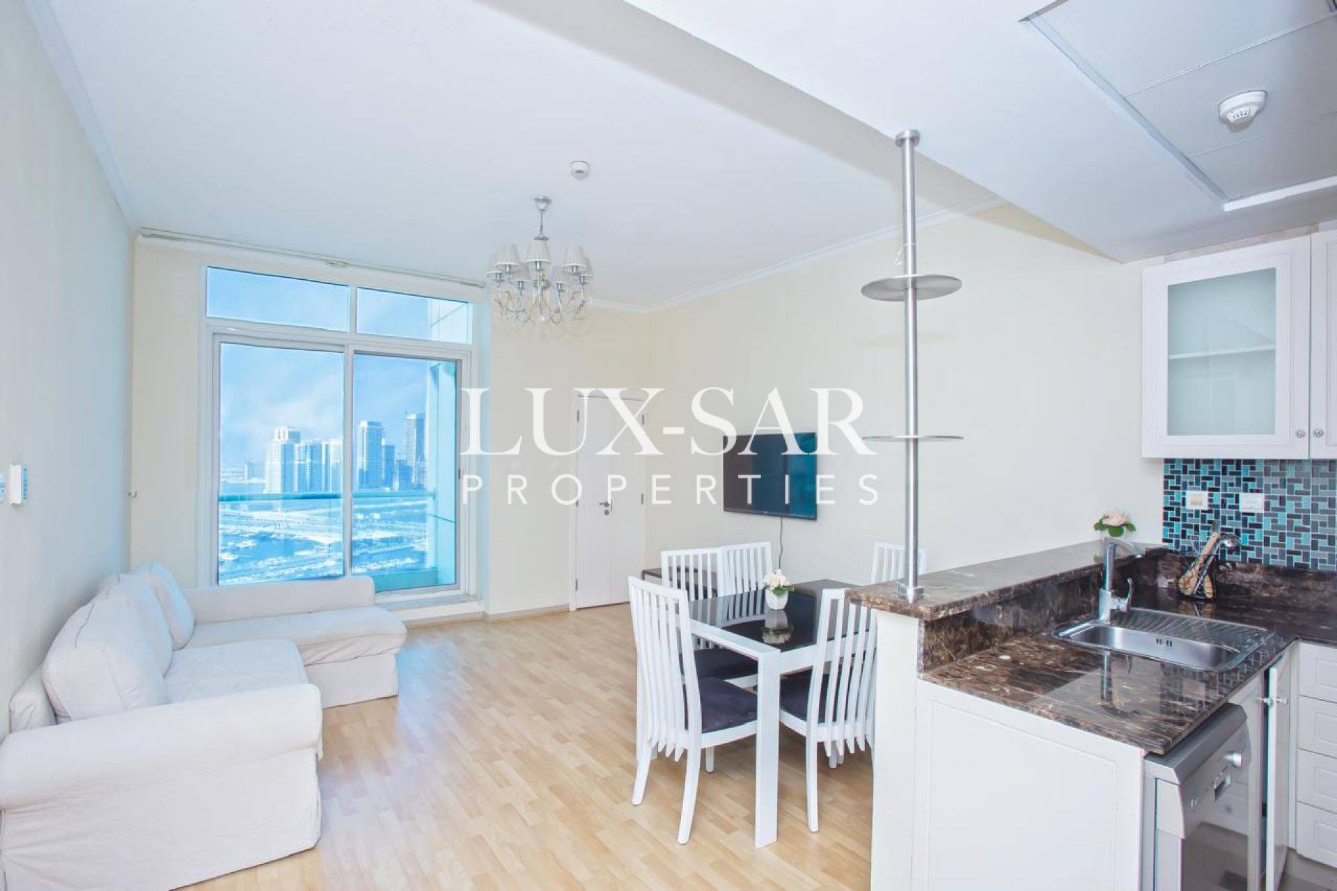 Luxsar Properties is delighted to offer this high-floor, fully furnished 1-bedroom apartment featuring breathtaking sea views and elegant modern interiors.