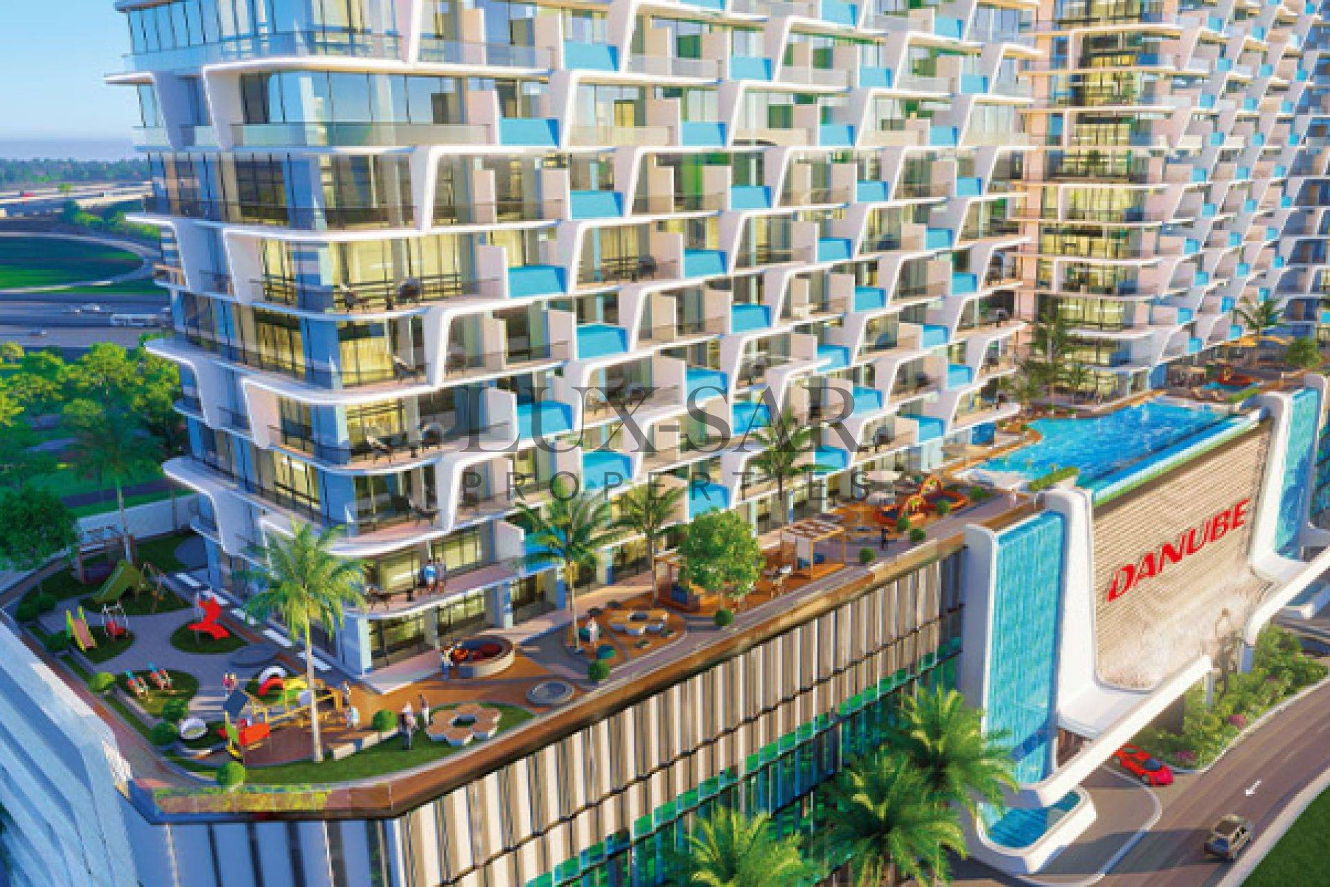 Lux-Sar Properties proudly presents this luxurious one-bedroom apartment for sale in the Sportz by Danube, Dubai Sports City.