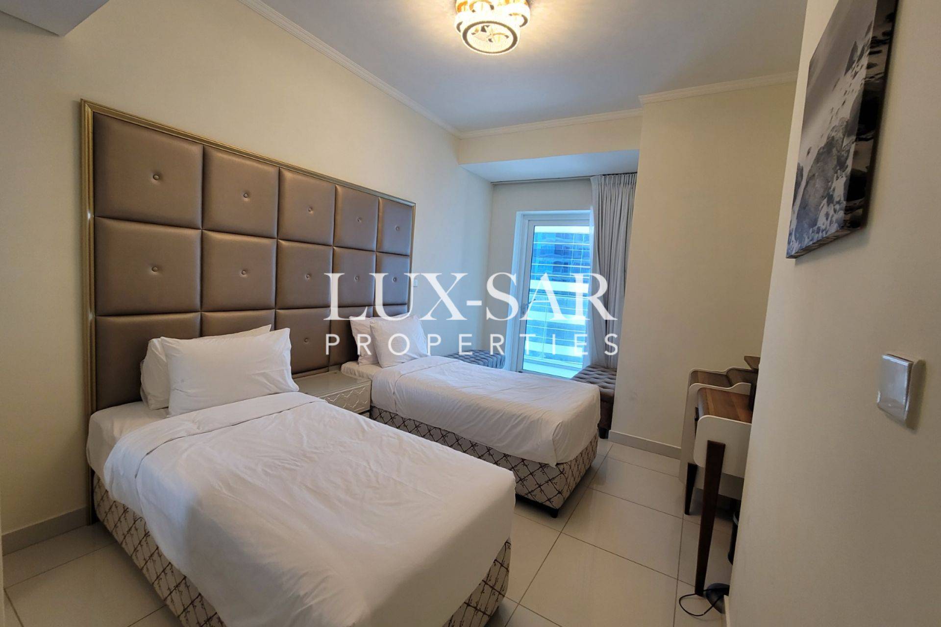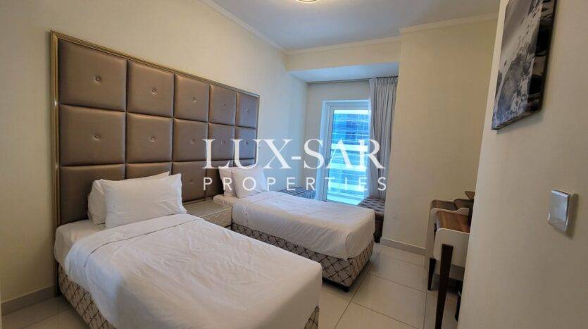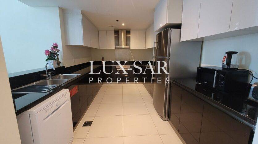 Lux-sar Properties is pleased to present this luxurious 3-bedroom apartment with maid’s room for rent in DAMAC Heights, Dubai Marina.