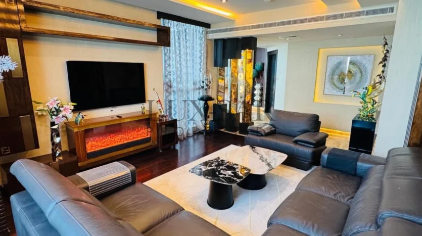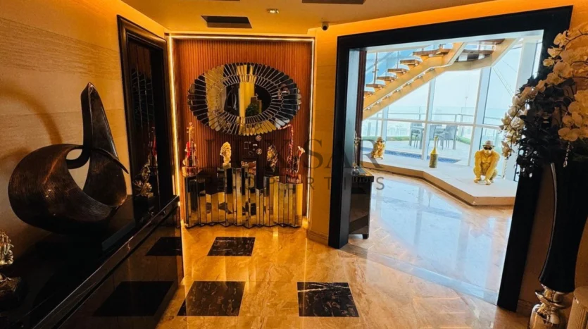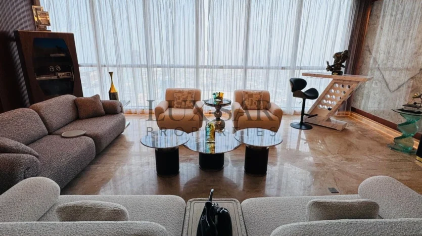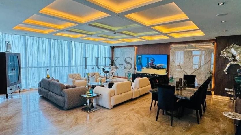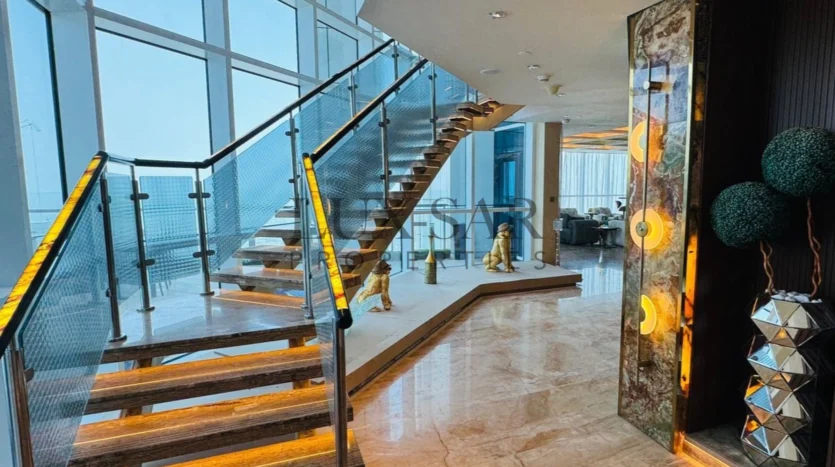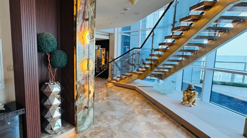 This Sea facing penthouse is a fully furnished and perfectly upgraded unit with exclusive and expensive branded furniture. This duplex penthouse includes an isolated internal lift and a separate maid’s room, ensuring seamless living with dedicated spaces for household staff. This penthouse offers an exclusive lifestyle in Dubai’s most prestigious address.