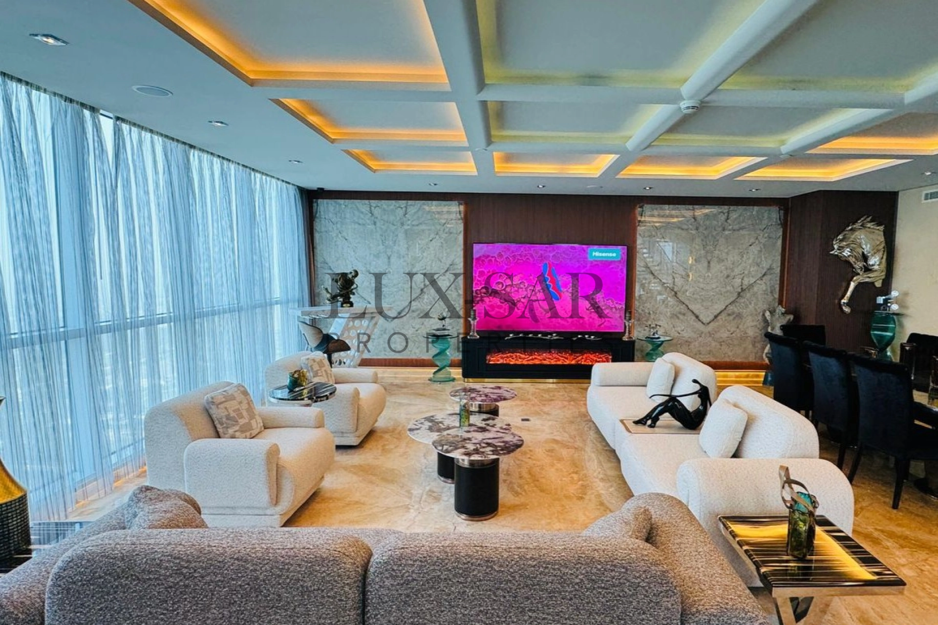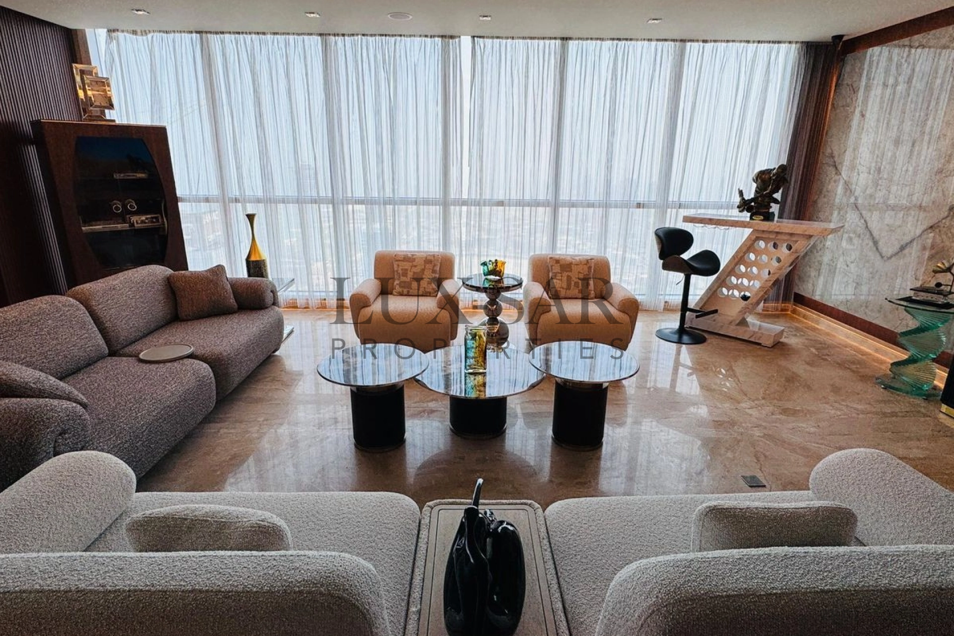 The penthouse is fully furnished with high class furniture, and marble table. The designs are perfect for entertaining guests and enjoying memoreable family moments.