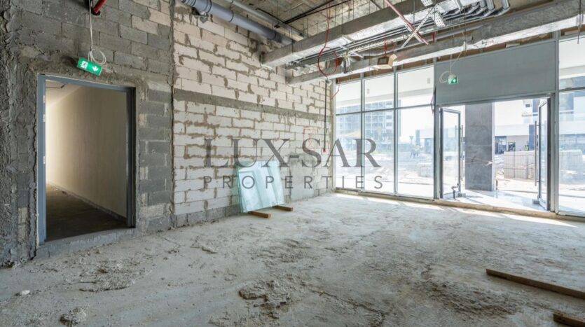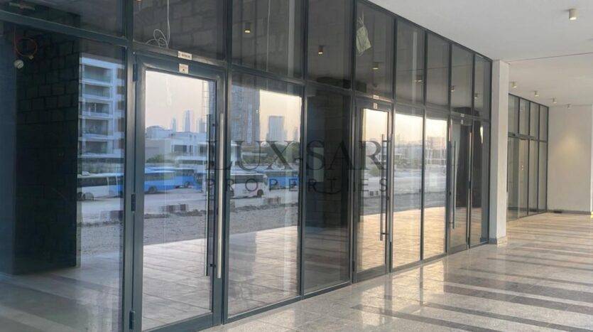 Lagoon-facing retail for rent in Azizi Riviera . Premium 437.98 sq ft shop, AED 150,000 yearly. Lagoon completing in 6 months—high footfall, prime investment location in MBR City.