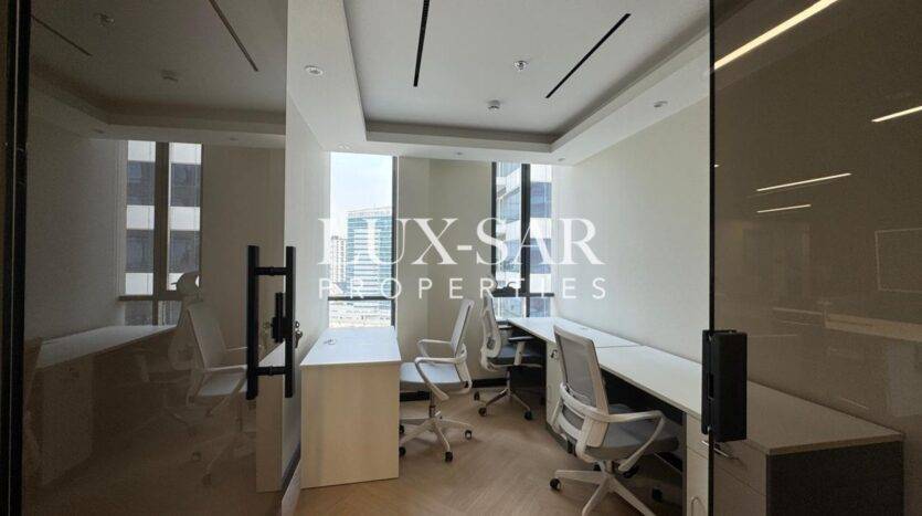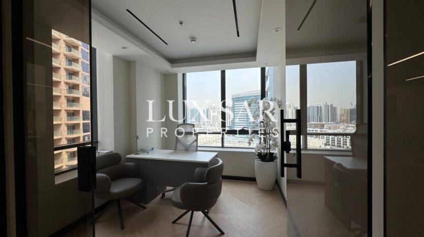 LuxSar Properties is pleased to present this Amazing fully fitted and furnished office now available in Jumeirah Village Circle, JVC. Not an inch of the best modern fit out is missed with this stunning office.